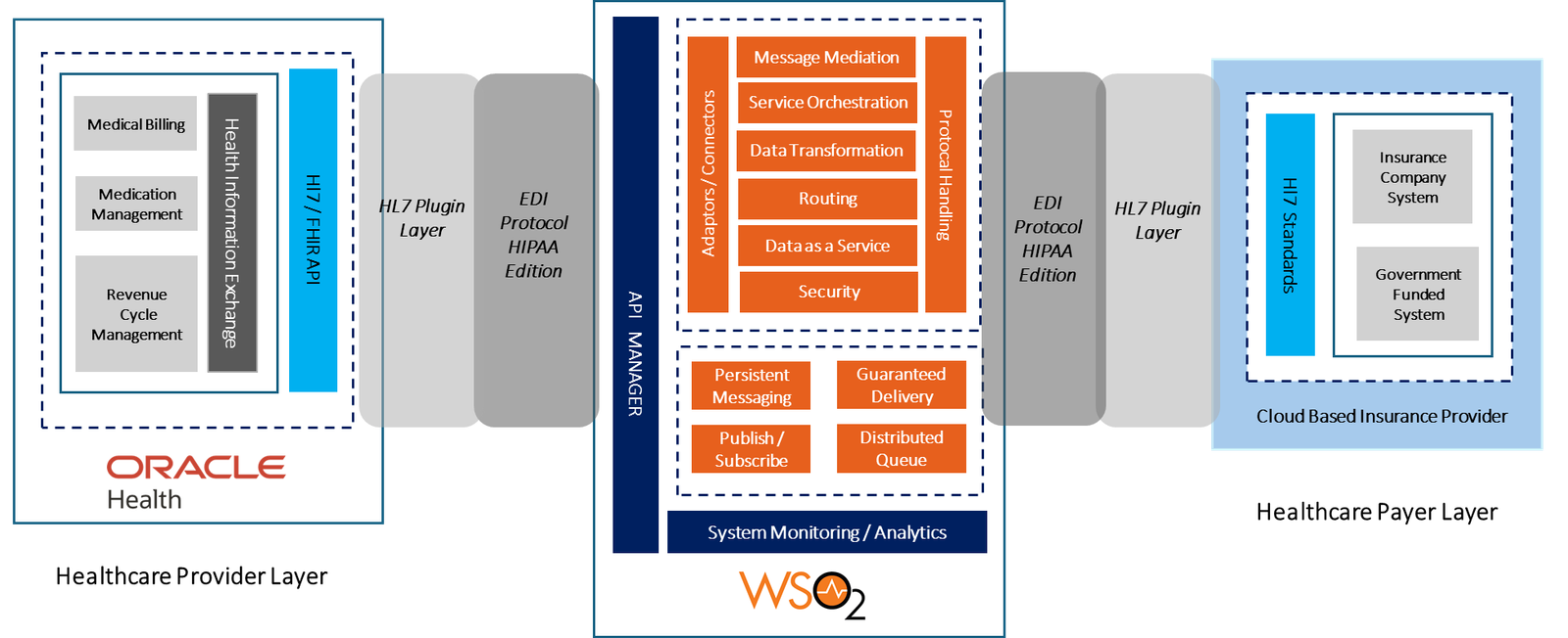 Tellestia designed a centralized integration hub leveraging the WSO2 integration platform to serve as a secure middleware layer between Oracle Health EHR and multiple insurance providers. This architecture delivered scalable, API-led connectivity while supporting both modern and legacy integration methods.